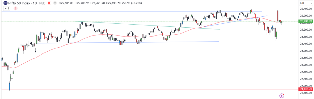 Nifty 50 – I would want at least 26,000β26,100 to be taken out for the markets to resume an upswing. Bank Nifty is on a stronger footing as of now.