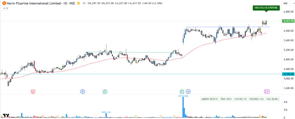 Navin Fluorine – The stock is consolidating above the breakout and looks good to me. If the stock falls below the blue line, I wouldnβt be interested.